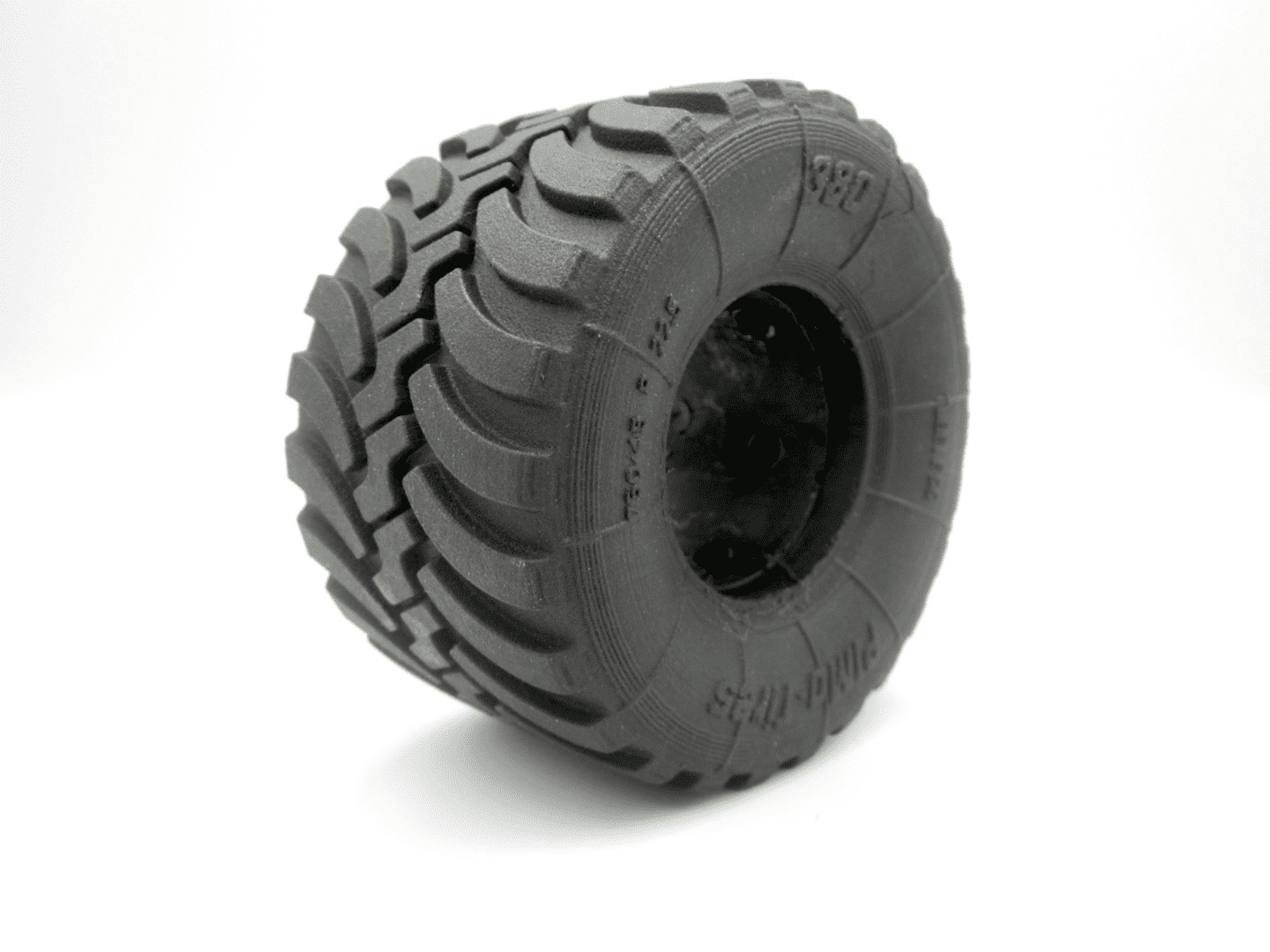 Today, he uses SLA 3D printing for small tyres and SLS 3D printing, which is cheaper, for producing larger ones. To produce the tyres, he uses a special PU foam.