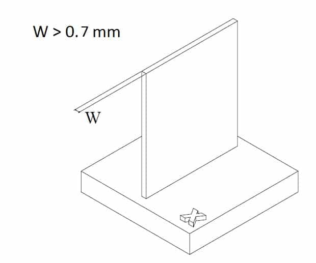 Walls thinner than 0.5 mm are likely to over thicken as a result of the heat from the laser.