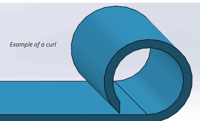 The outside radius of curls must be at least twice the material thickness.