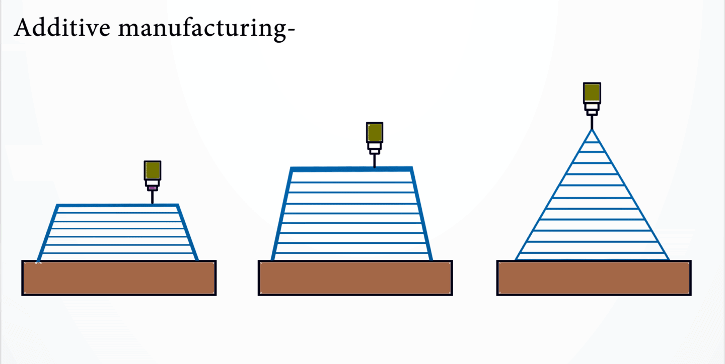 3D printing is additive manufacturing, which means the initial material is built layer by layer, rather than removed as in subtractive manufacturing. 3D printing creates three-dimensional objects from reading a virtual computer design and reproduces it into a real and tangible part by using material filaments or powders.