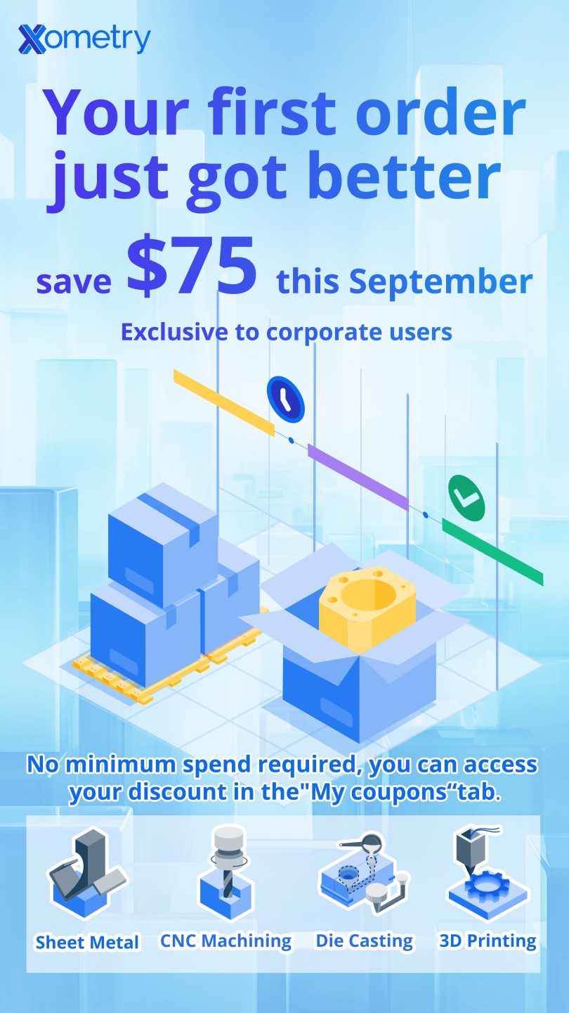 Discover a new way to order custom parts with just a few clicks. As a newly registered corporate user, you’ll receive a $75 discount on your first order, which can be accessed via the My Coupons tab.